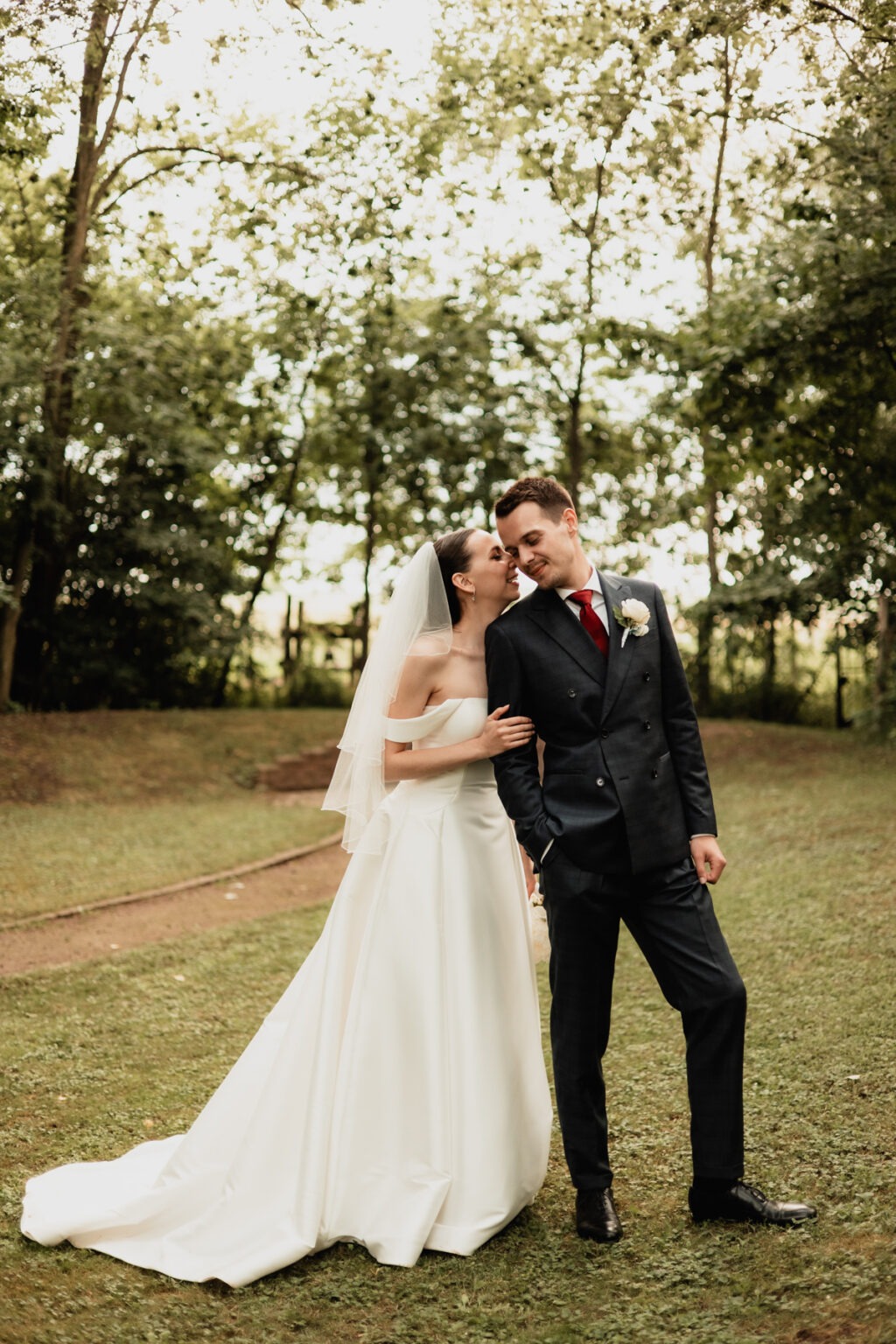 Lorsque le soleil s’est couché sur le parc, la lumière dorée de l’été a enveloppé les mariés, offrant des instants magiques et une lumière parfaite pour les photos de couple.