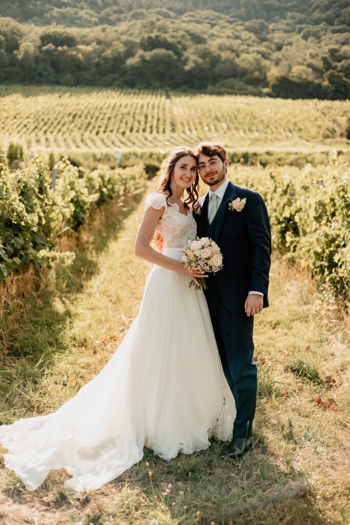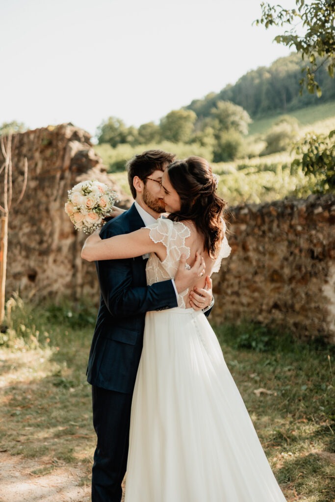Après une cérémonie religieuse empreinte de sincérité, les jeunes mariés ont pris le temps de s’échapper dans le vignoble alsacien et sur les remparts de Châtenois. Un moment suspendu, baigné de lumière, pour immortaliser leurs premiers instants en tant que mari et femme dans un décor authentique et chargé d’histoire.