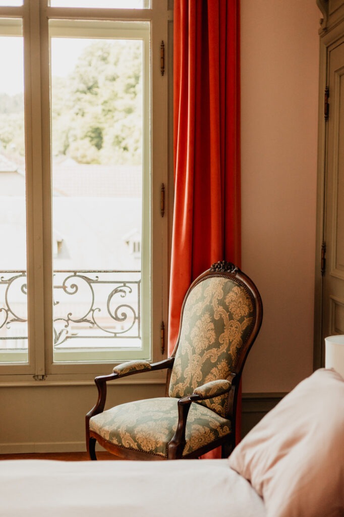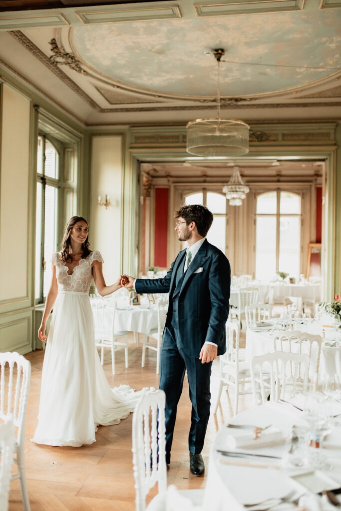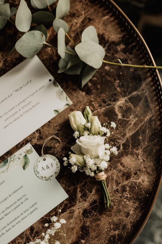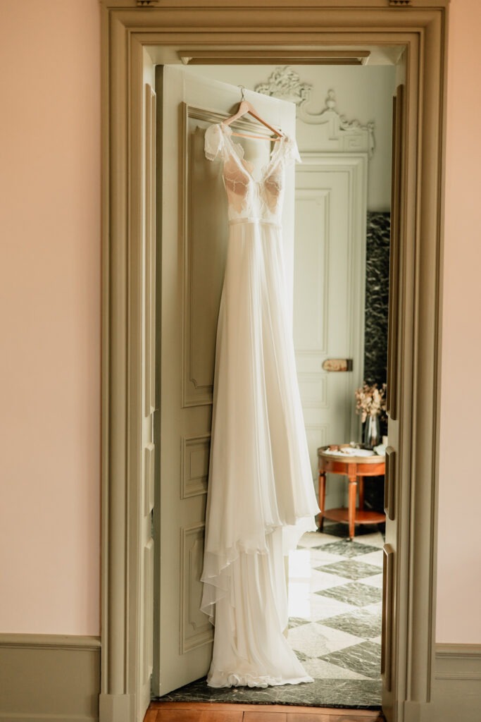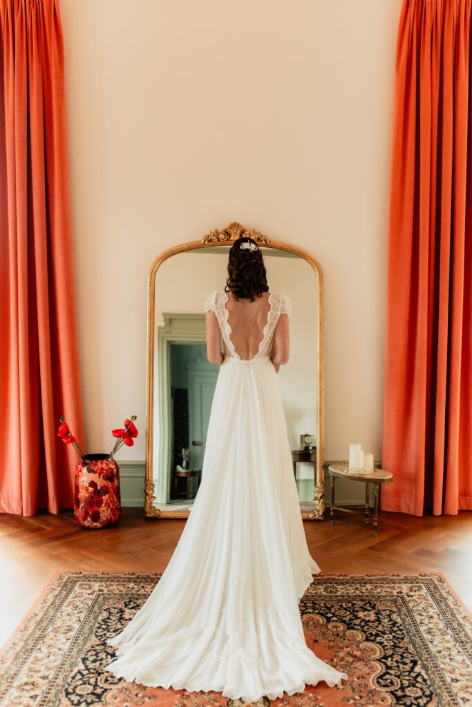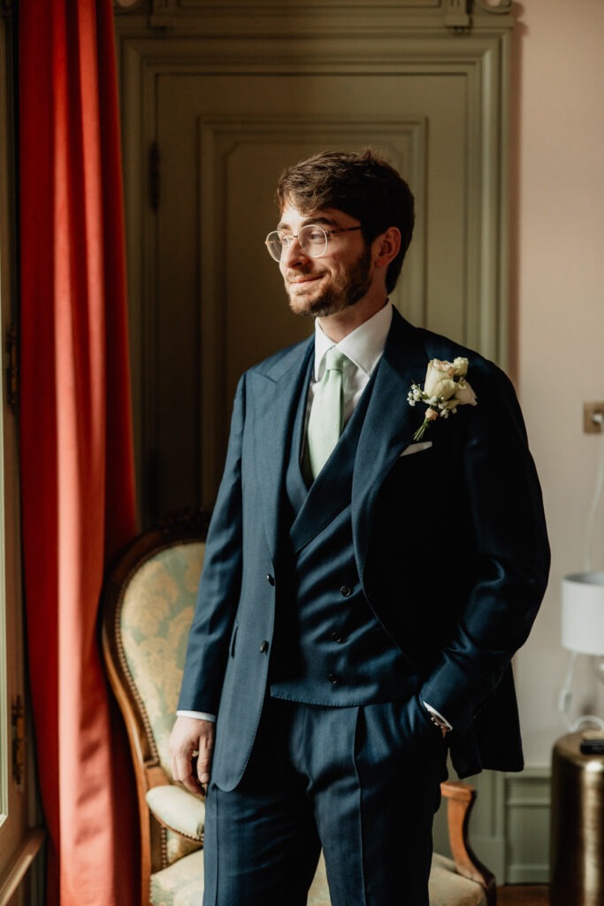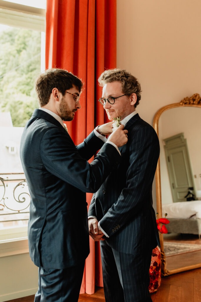 Ils ont choisi de débuter cette journée dans un écrin tout particulier : la chambre nuptiale du Château Burrus, tout juste achevée. Un lieu intime, lumineux et soigneusement décoré, idéal pour des préparatifs empreints de sérénité et d’élégance.