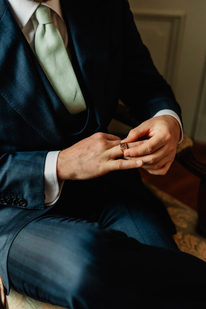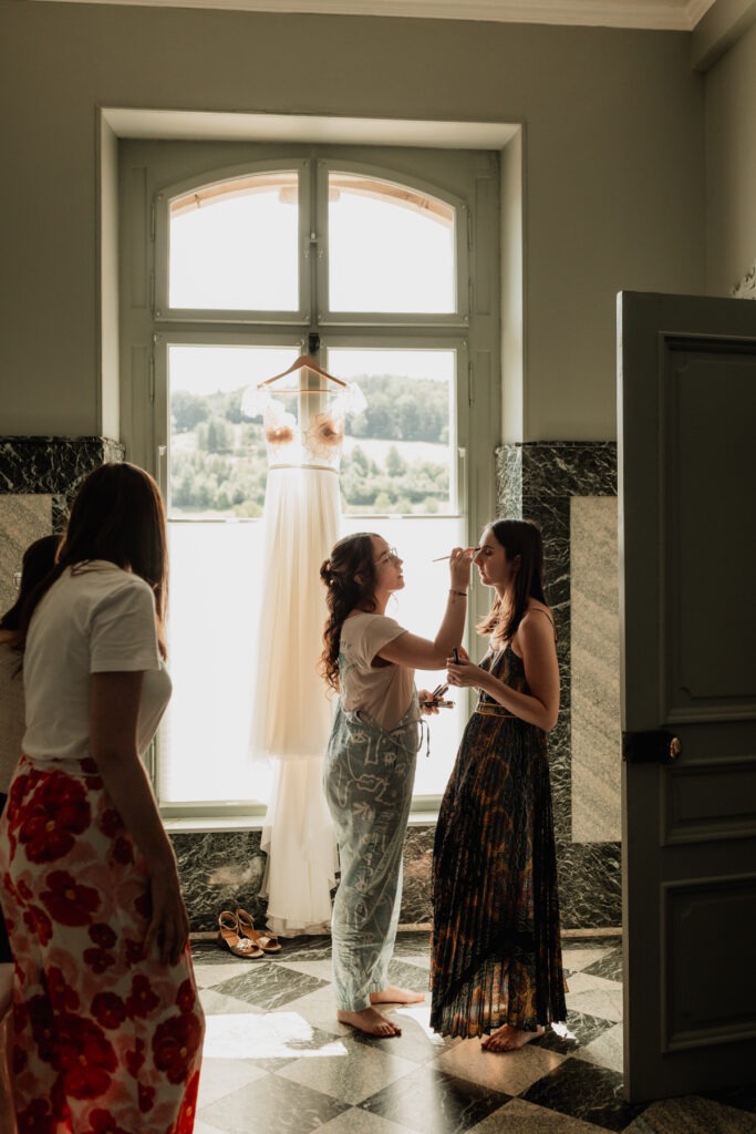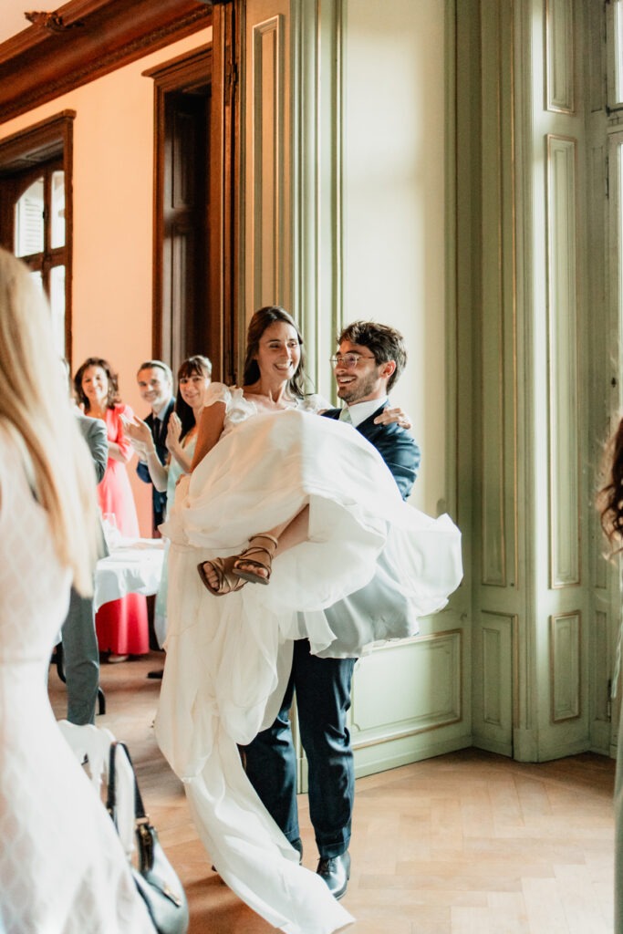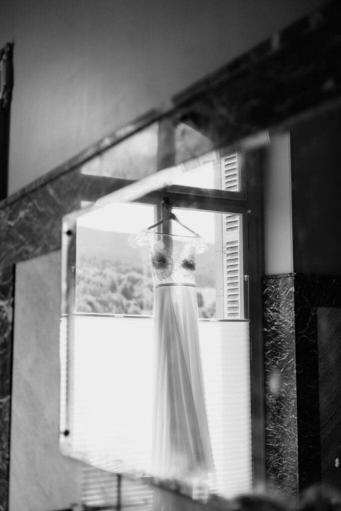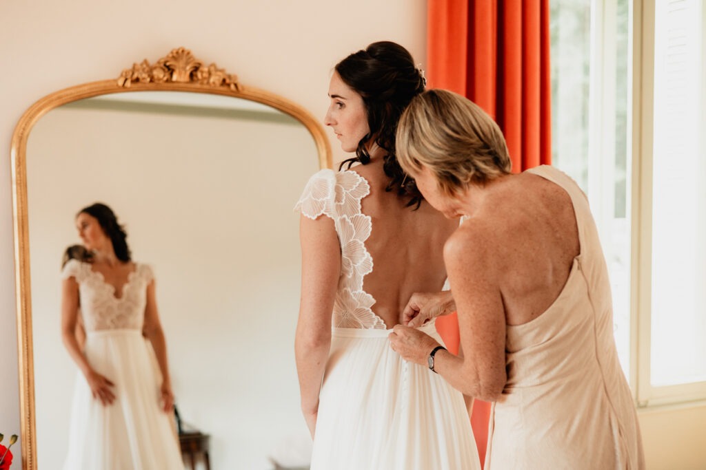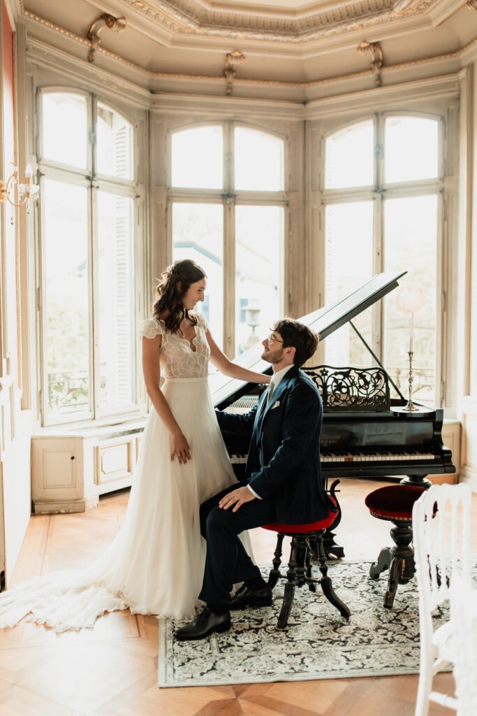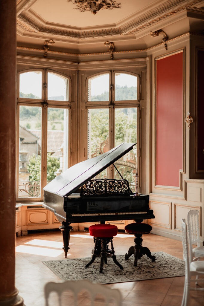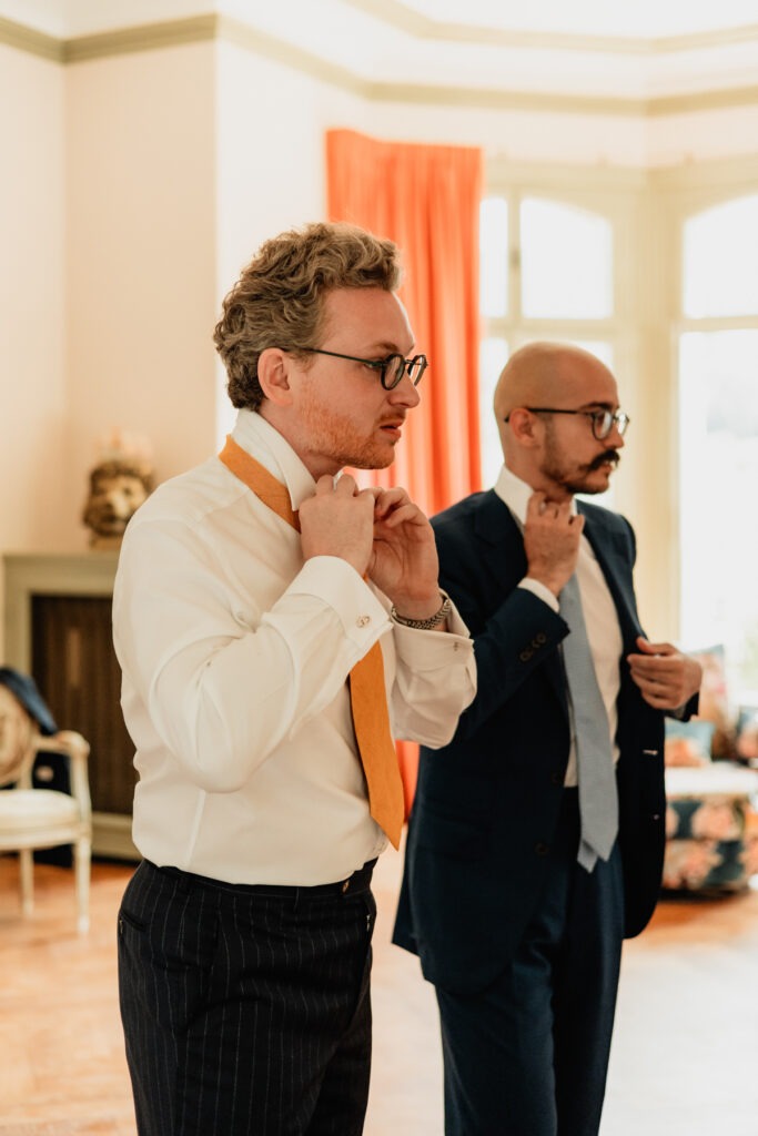 Ils ont choisi de débuter cette journée dans un écrin tout particulier : la chambre nuptiale du Château Burrus, tout juste achevée. Un lieu intime, lumineux et soigneusement décoré, idéal pour des préparatifs empreints de sérénité et d’élégance.