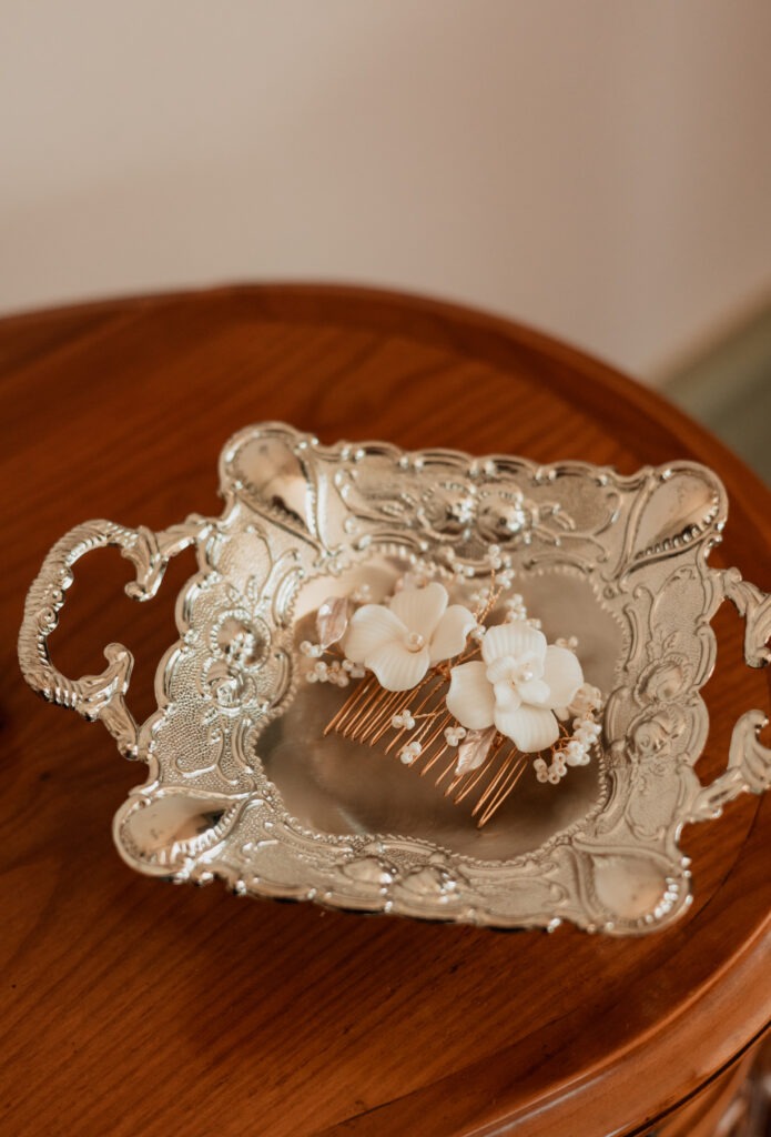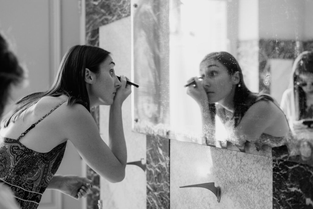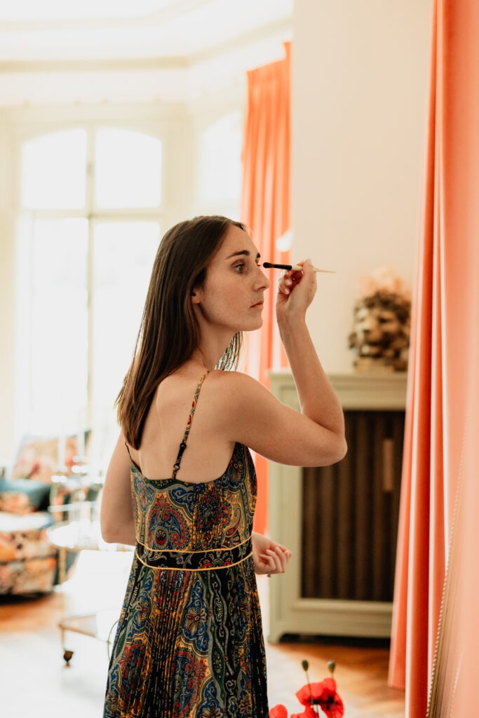 La mariée a souhaité réaliser elle-même sa mise en beauté, avec une grande délicatesse : un maquillage subtil, lumineux, fidèle à sa personnalité. Une élégance naturelle, sans artifice, qui laisse toute sa place à l’émotion.