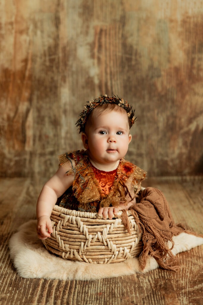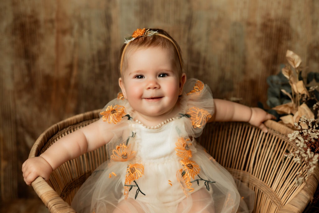 La séance “sitter” se réalise dès que bébé tient assis seul, souvent autour de 6 à 9 mois. C’est un âge merveilleux : l’enfant est curieux, expressif, et son visage s’illumine à chaque interaction.