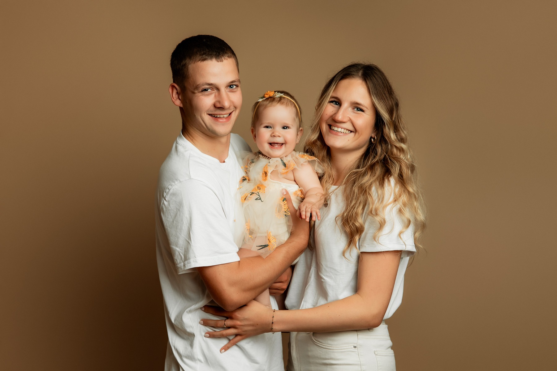 Au studio, j’aime capturer ces instants simples. L’amour s’y exprime dans un regard, un sourire, une main posée sur une petite joue. Ces images, bien plus que de simples photographies, deviennent des traces du lien qui unit votre famille — des souvenirs à offrir, à encadrer, à transmettre.