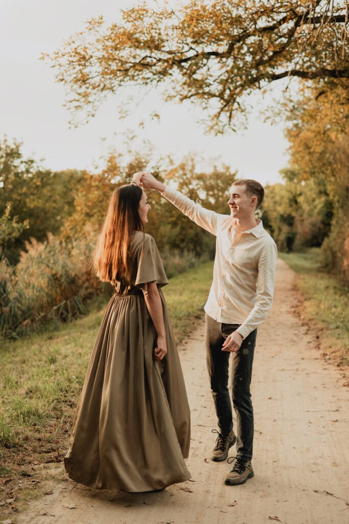 Nous avons profité des chemins bordant le canal et de la forêt environnante pour créer des images à la fois naturelles et poétiques, à l’image de ce couple complice et apaisé.
