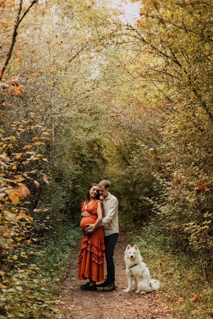 Les futurs parents attendaient leur premier enfant et souhaitaient immortaliser cette période si particulière entourés de leur fidèle compagnon à quatre pattes.